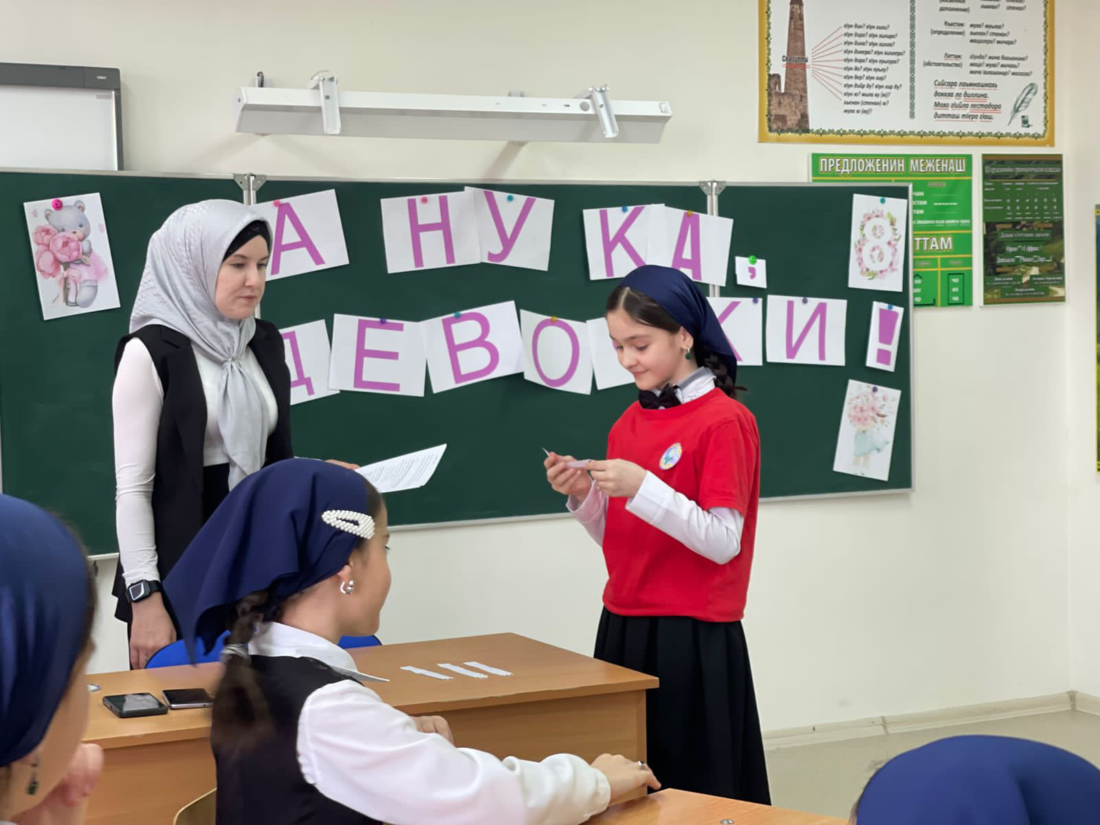 6 марта 2023 г классные руководители 5-х классов Хизриева Л.Х и Баматаева К. А провели конкурс "А ну-ка девочки" с