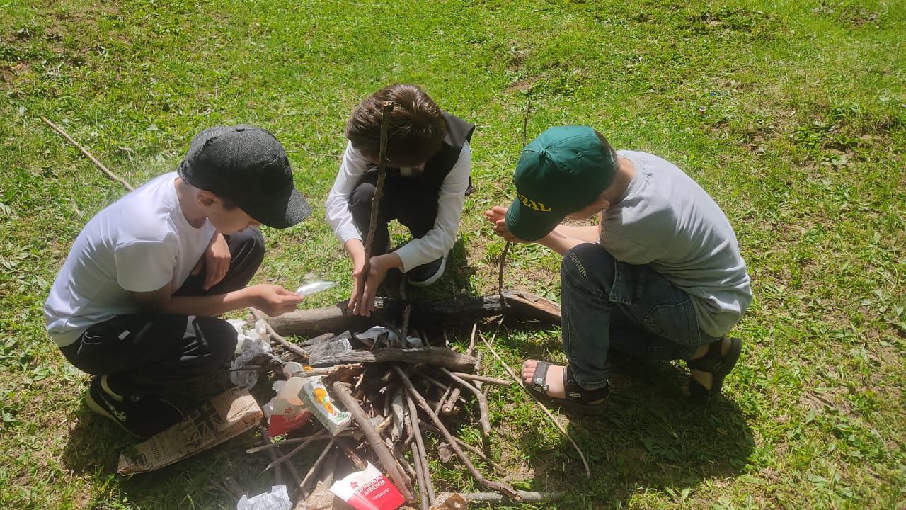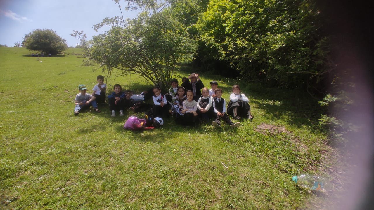 Урок был проведён на природе.Даудова Д.А.познакомила детей с