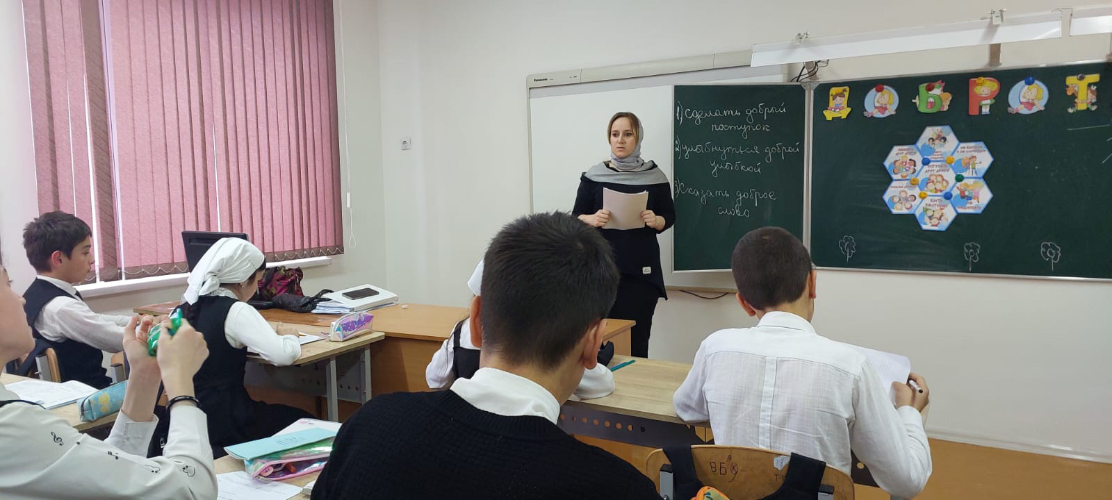 20.03.24 в МБОУ "СОШ 1 с.Зандак" кл.рук 6А класса .Омарова З.М. провела кл.час на тему: Что такое доброта ? Этот классный час помог каждому участнику заглянуть в свое сердце, чтобы оно стало открытым и добрым. Доброту можно проявить в мире по-разному: сделать добрый поступок, улыбнуться доброй улыбкой, сказать доброе слово. Также кл.рук обсудила с учащимися понятия «добро», «доброта».