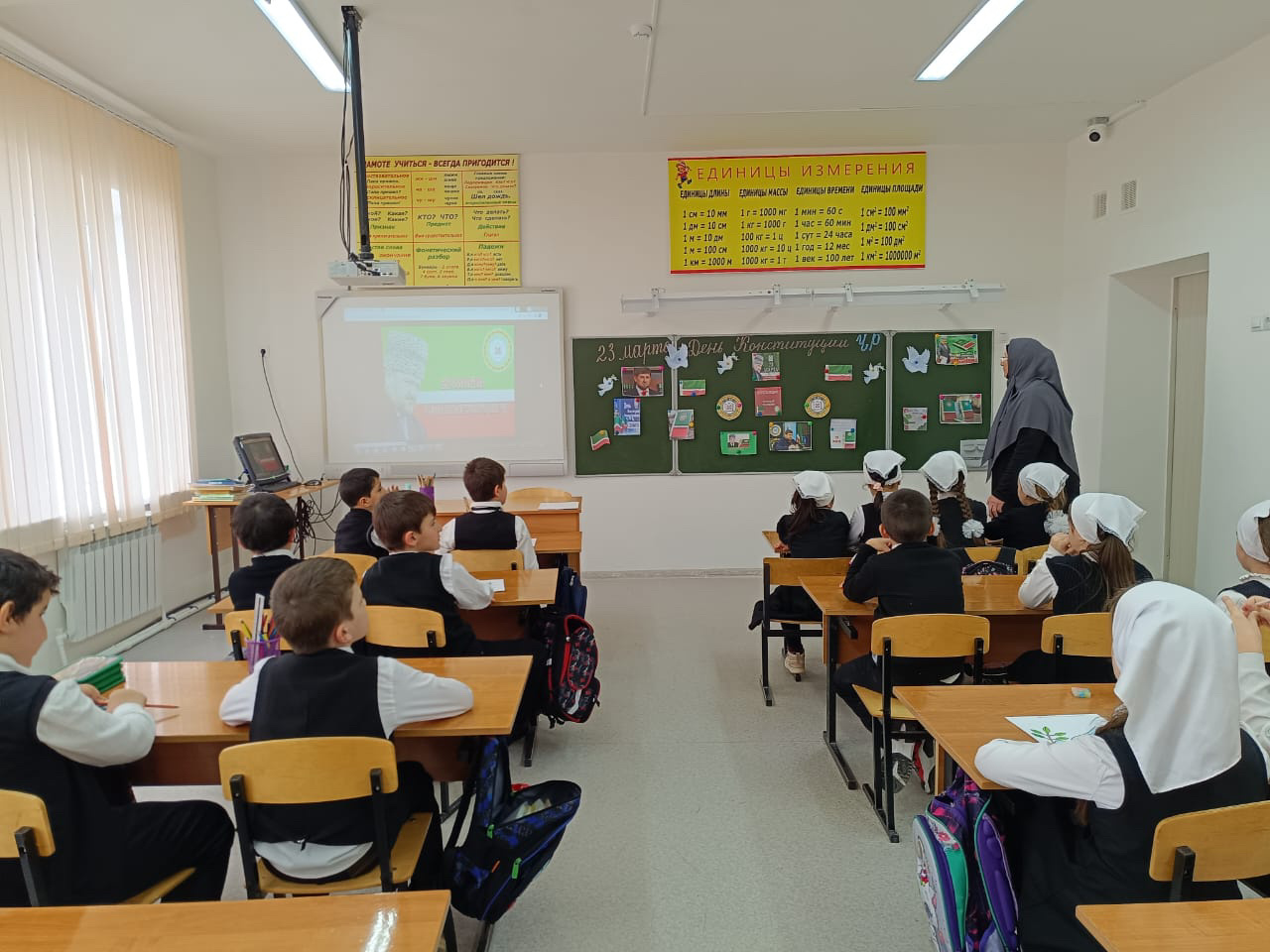 20.03.24 г кл.руководитель 2 "а"кл Гиргиева Р.З. провела интересный для обучающихся классный час,посвящённый Дню Конституции ЧР.