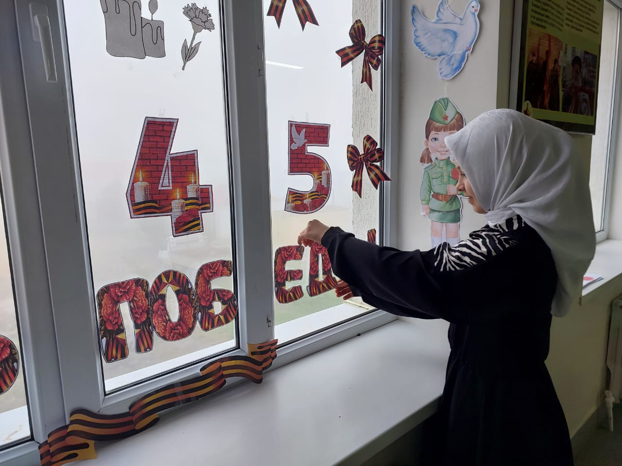 Акция "Окна Победы" 6 "а"кл. Кл.рук Омарова З.М. и учитель истории Омаров Х.В.