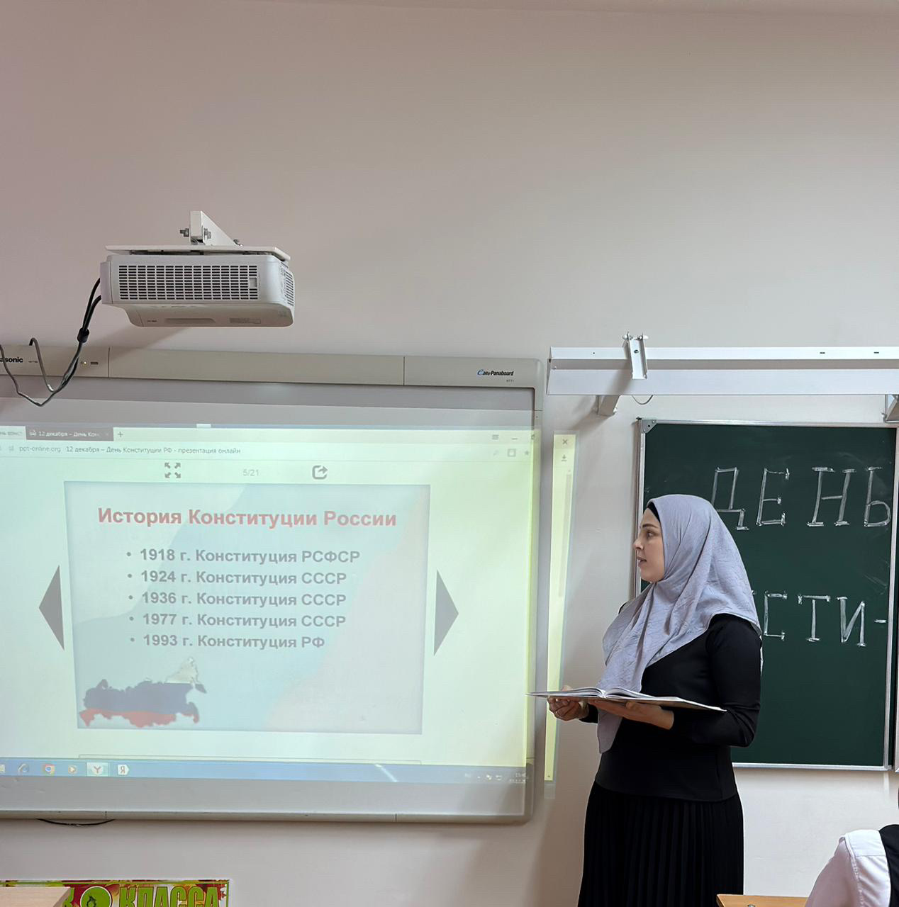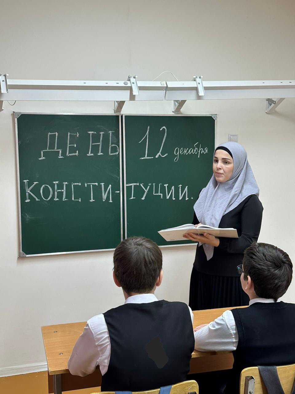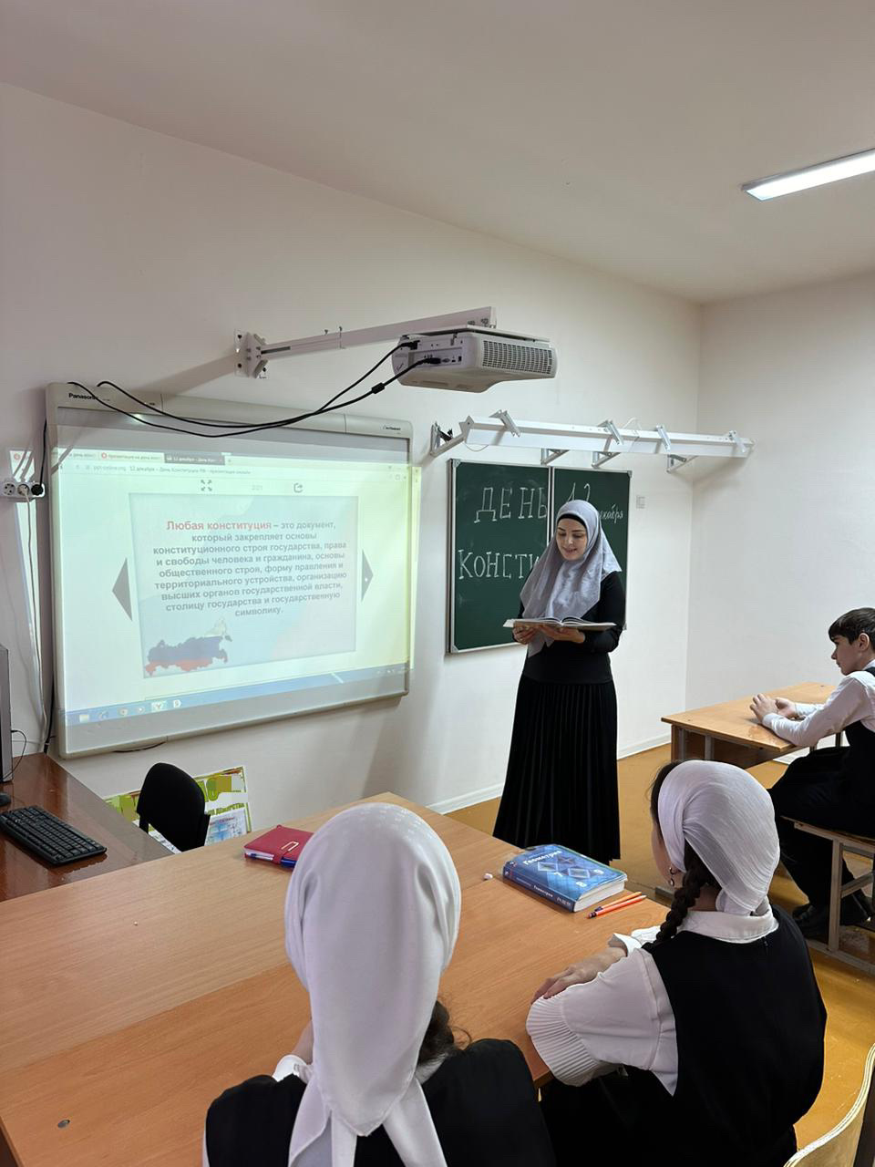 04 декабря 2024 года во взаимодействии с Отделом в Ножай-Юртовском районе УФСБ России по Чеченской Республике в МБОУ «СОШ 1 им.Билимханова С.Г. с.Зандак" прошло мероприятие ко Дню Конституции Российской Федерации.