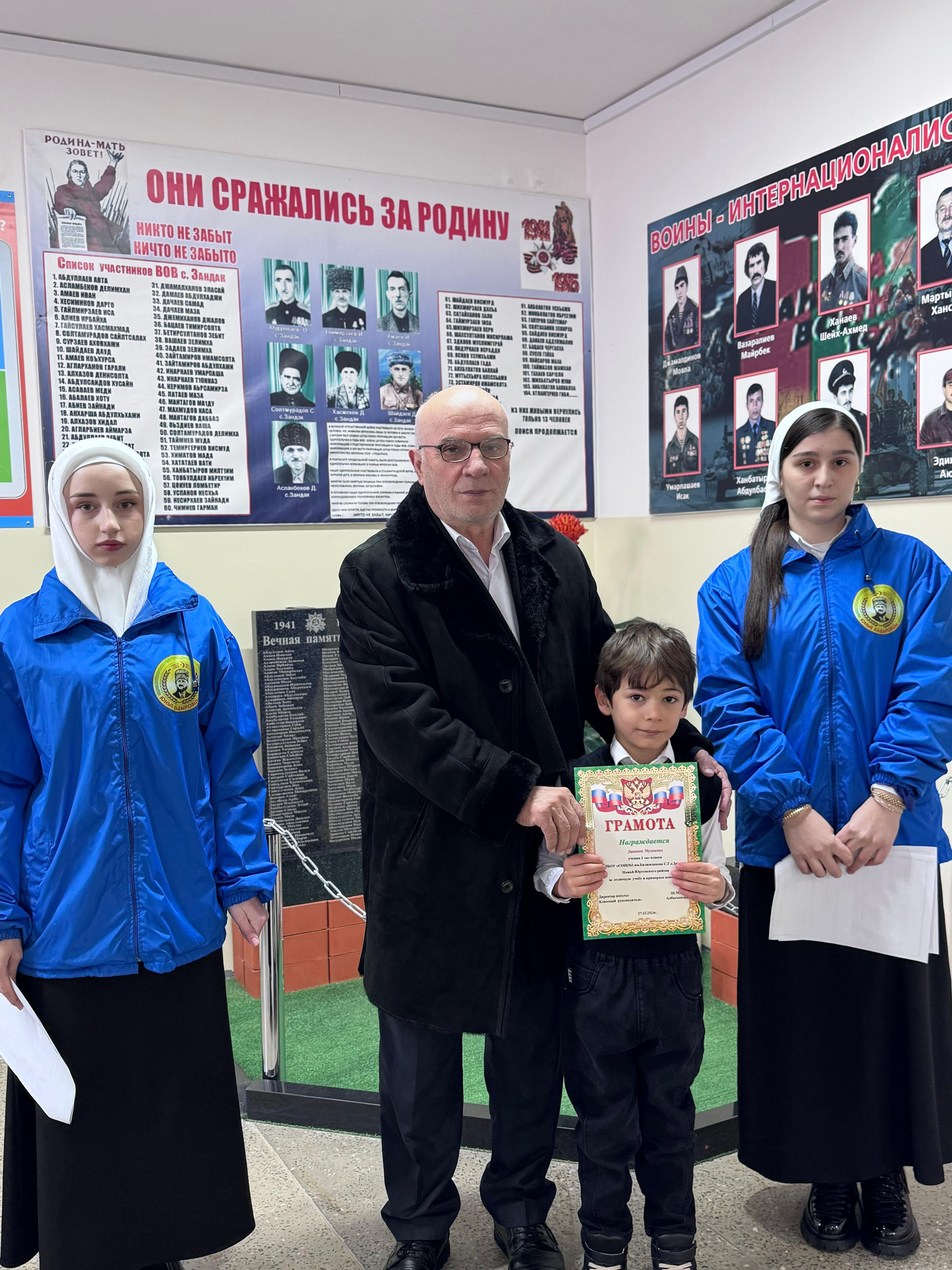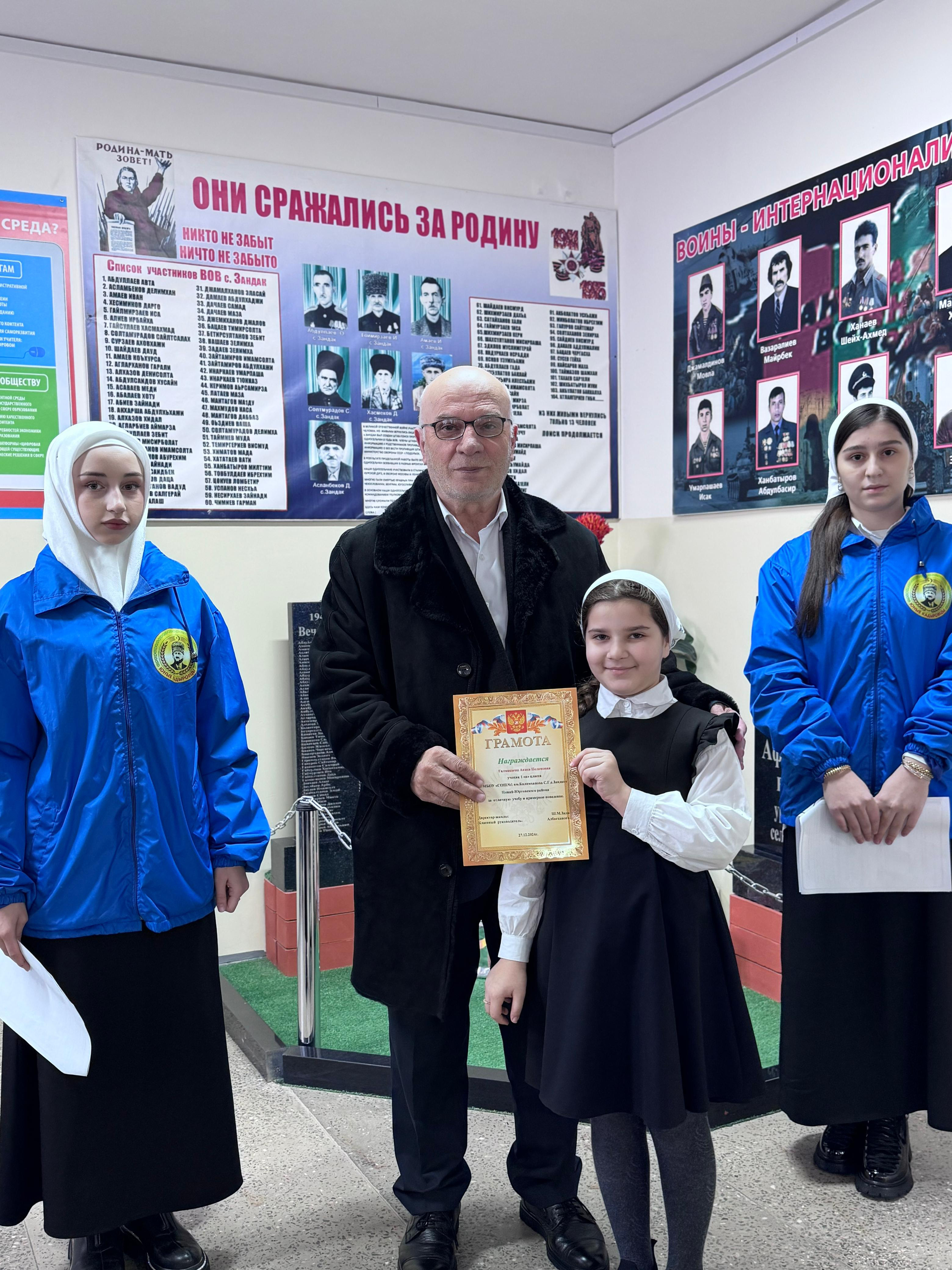 В конце линейки директором школы Задаевым Ш.М. и зам. директора по воспитательной работе Мусаниповой Й.Дж. были награждены грамотами за отличные успехи в учёбе.