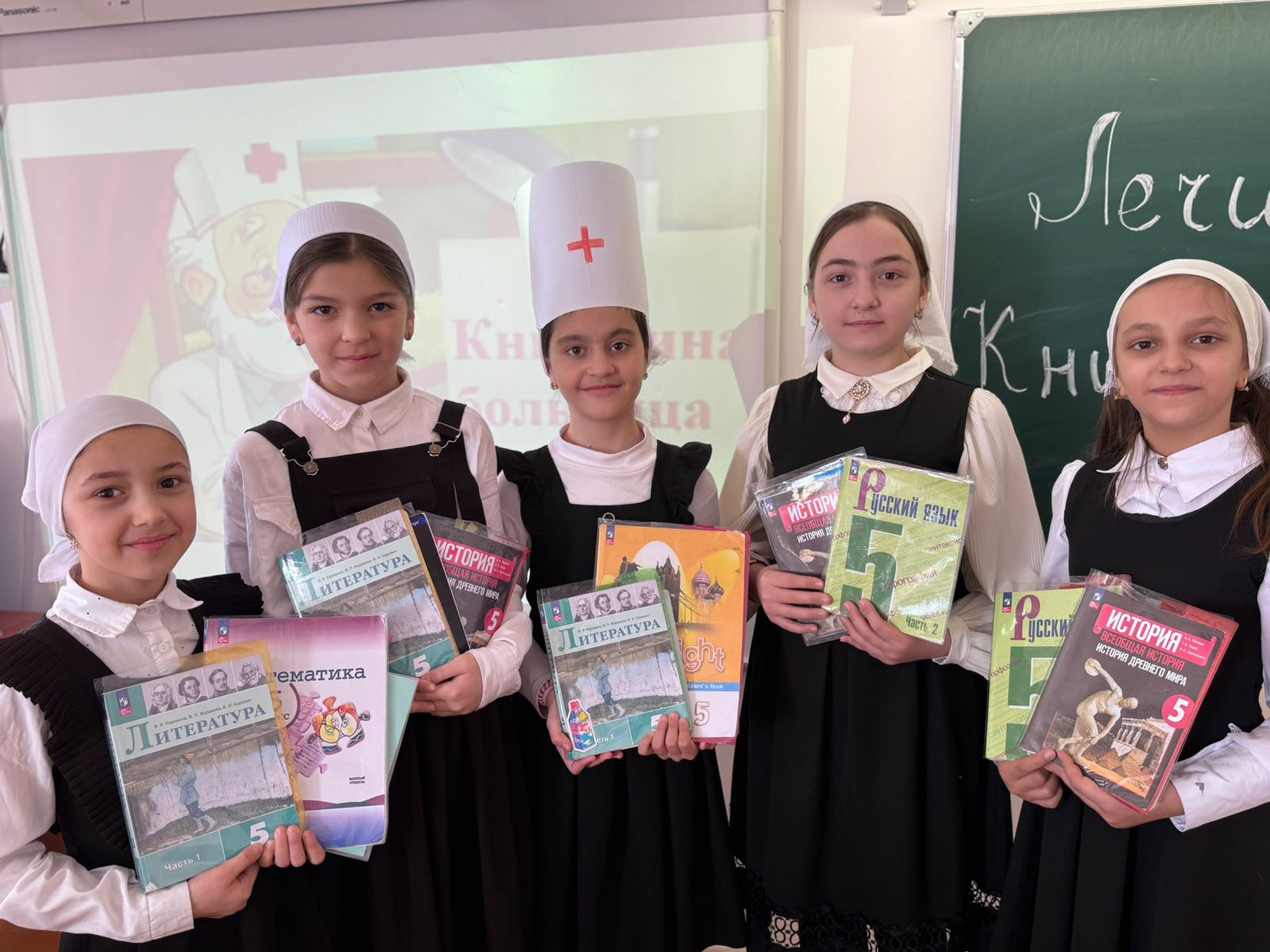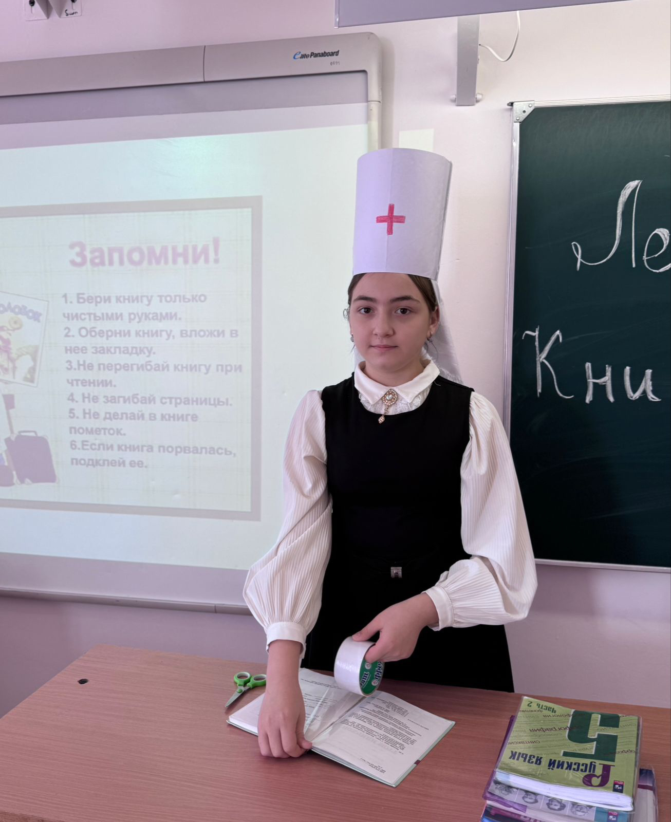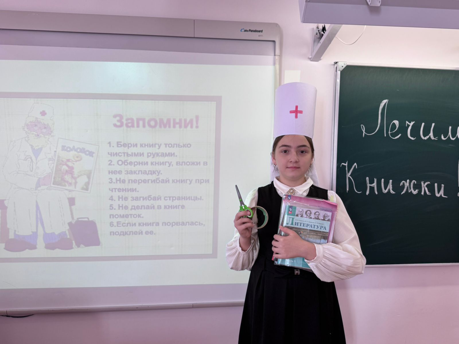 Участники Акции «Лечим Книги» учащиеся 5 «а» со своим классным руководителем Букуловой З.М. вооружившись ножницами, клеем и бумагой отремонтировали книги и дали им вторую жизнь.