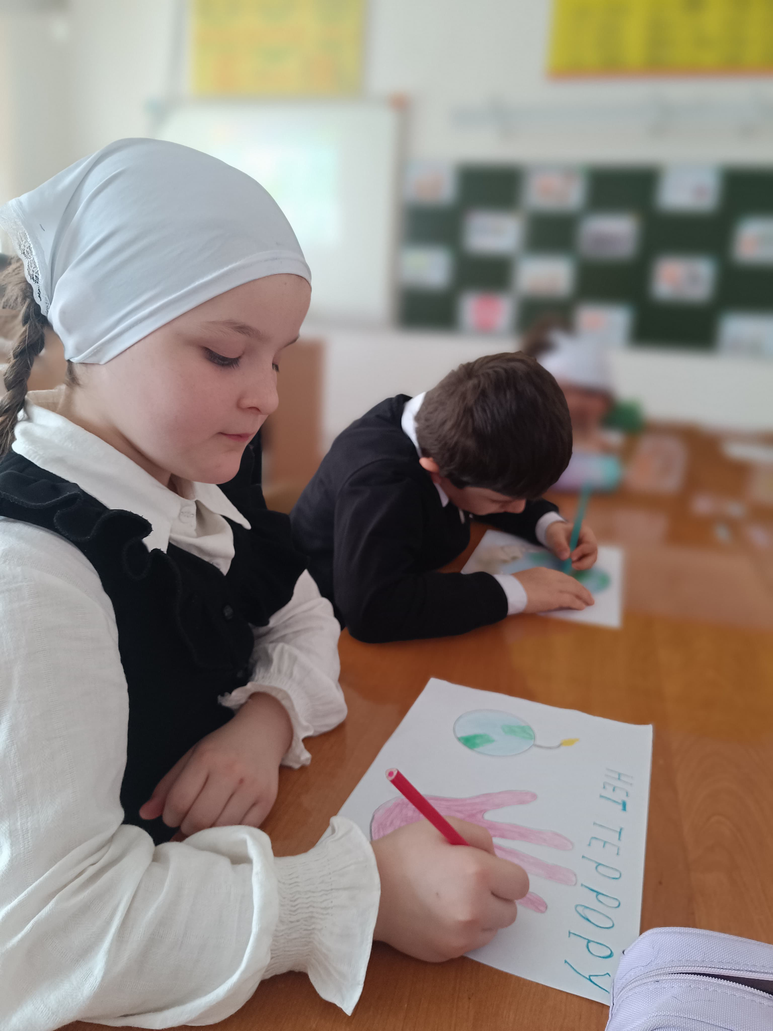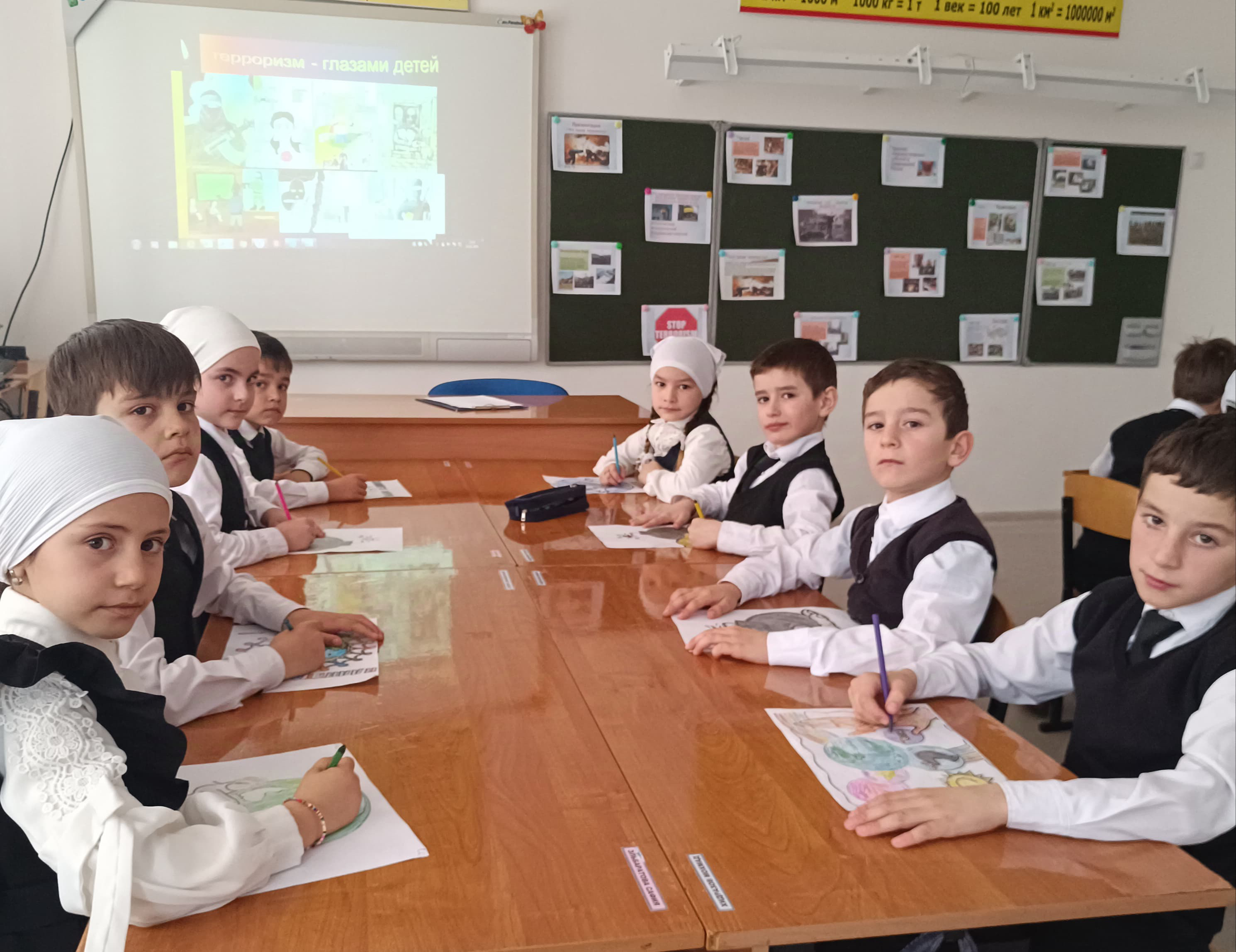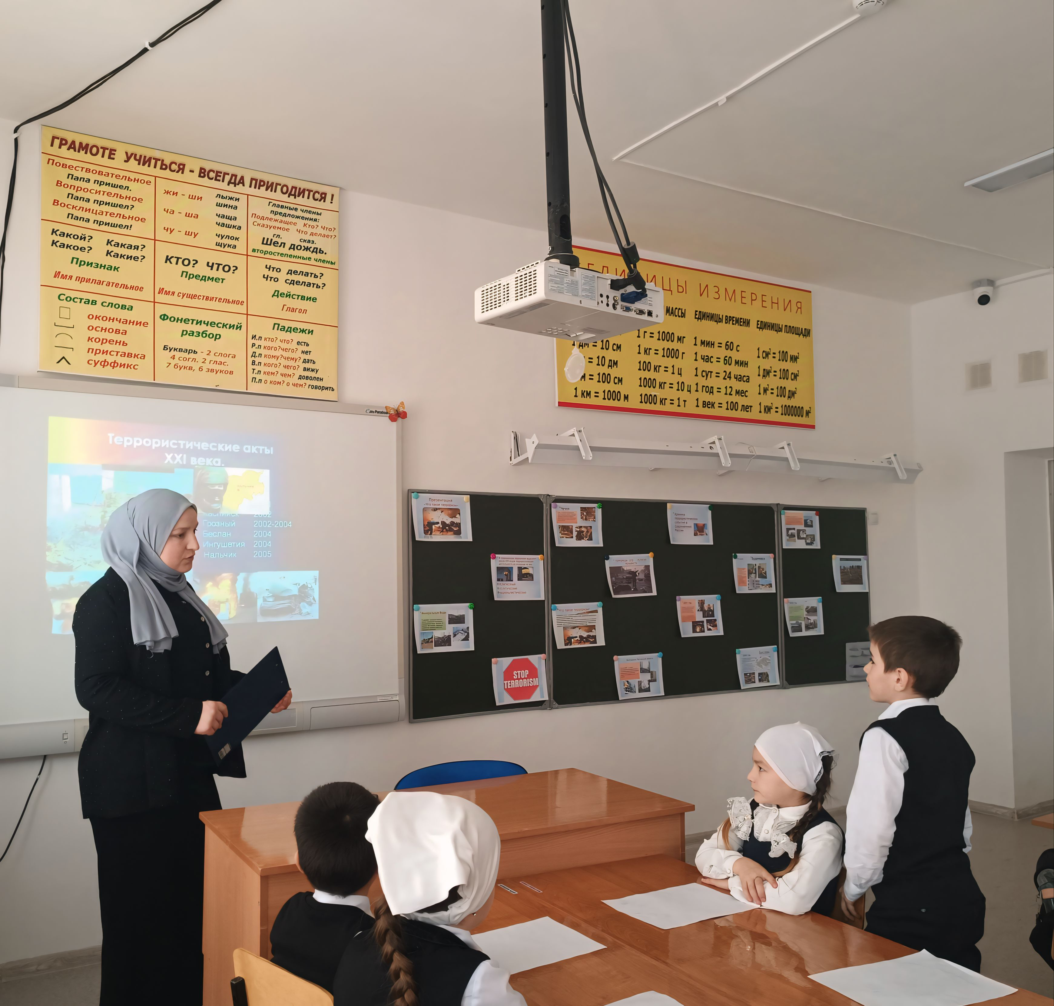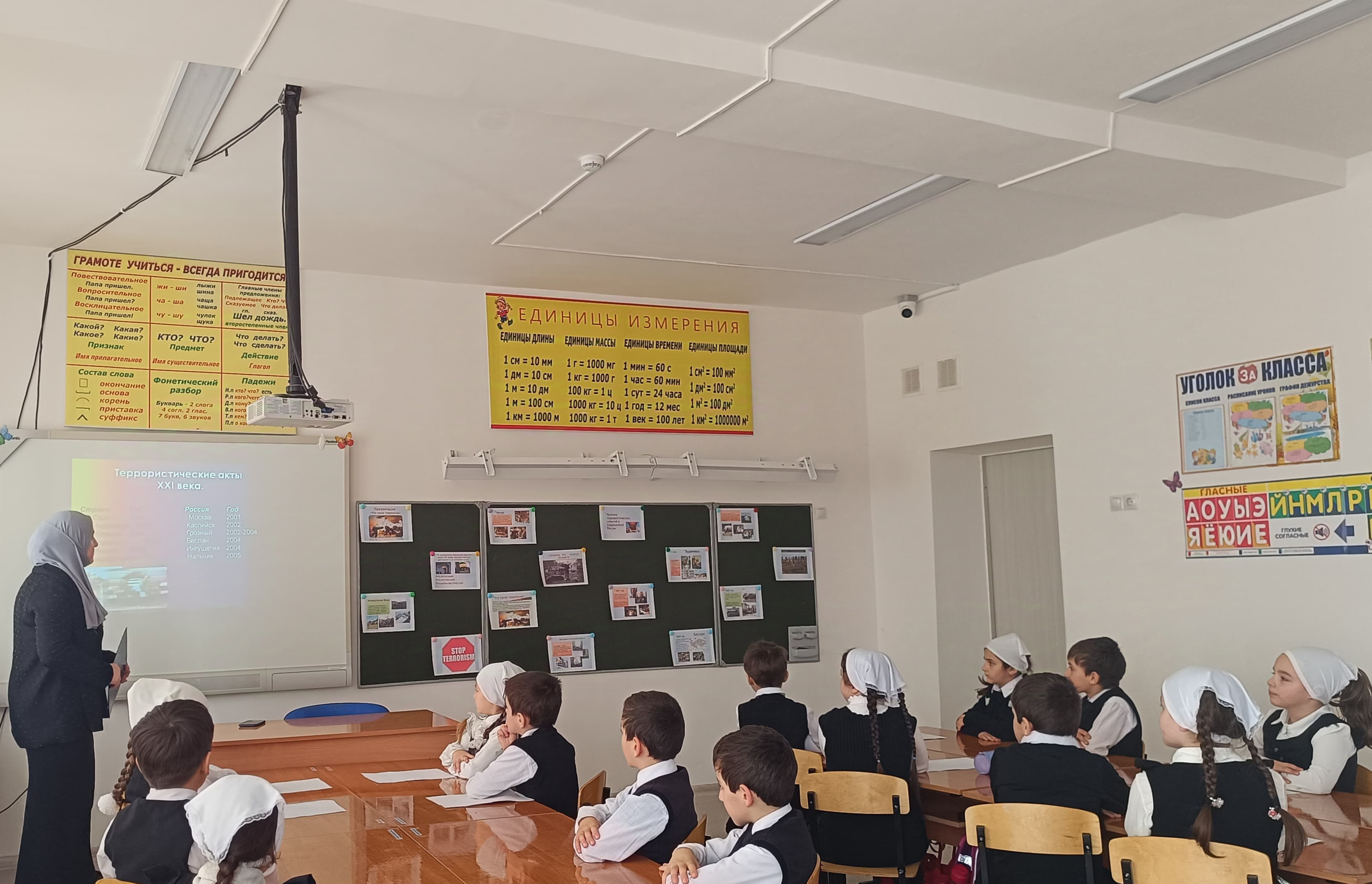 Классный руководитель 2 класса Ойсуева Лаюса Мусаевна провела классный час на тему: "Мы против терроризма " с
