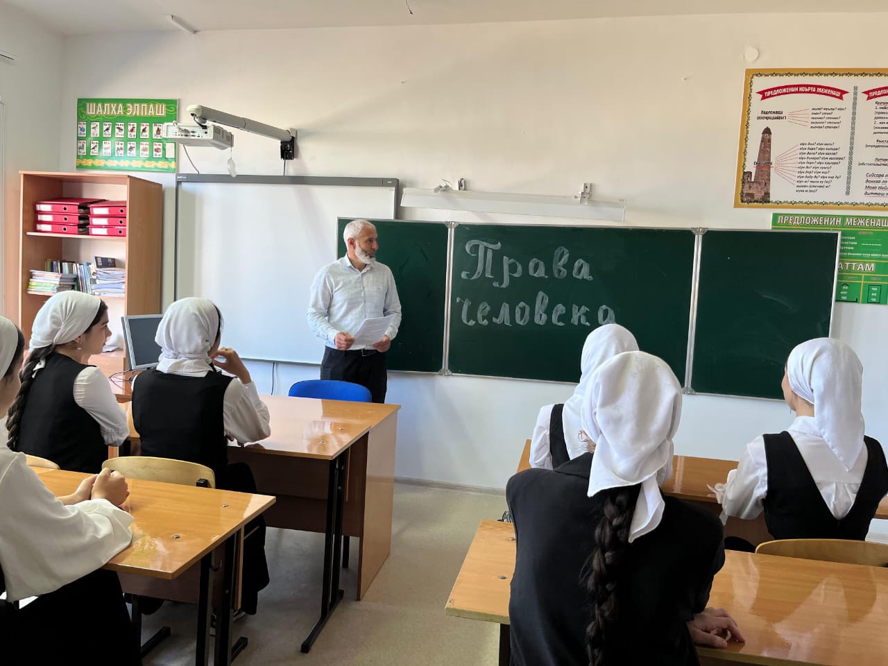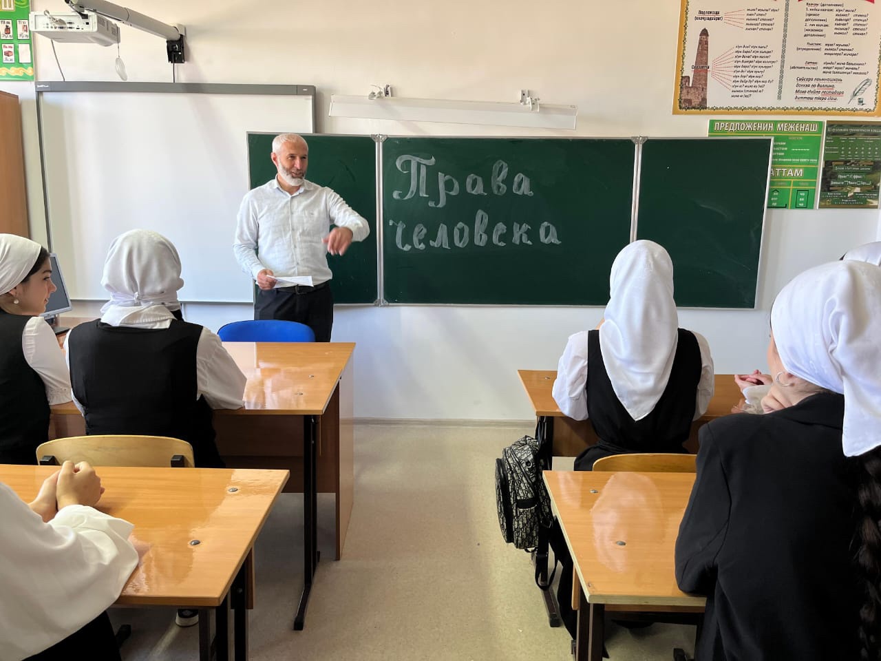 В 9 классе прошёл классный час на тему «Права человека». Ребят познакомили с основными правами из Конституции РФ и международных документов. Классный руководитель Магомедов И.И. вместе с обучающимися обсудили взаимосвязь прав и обязанностей, развивали уважение к свободам и ответственности каждого. Занятие прошло в интерактивной форме с дискуссиями и групповыми заданиями.