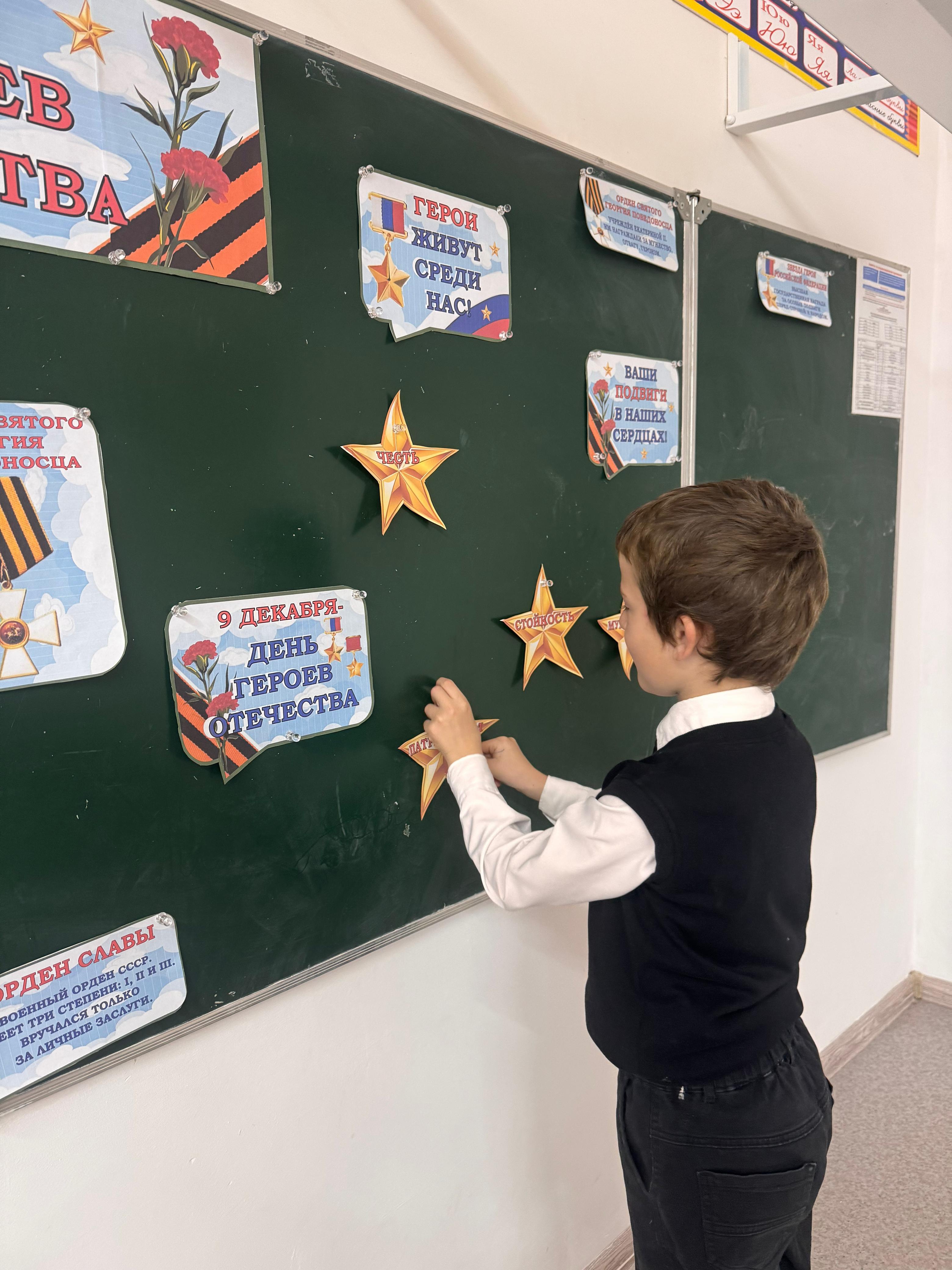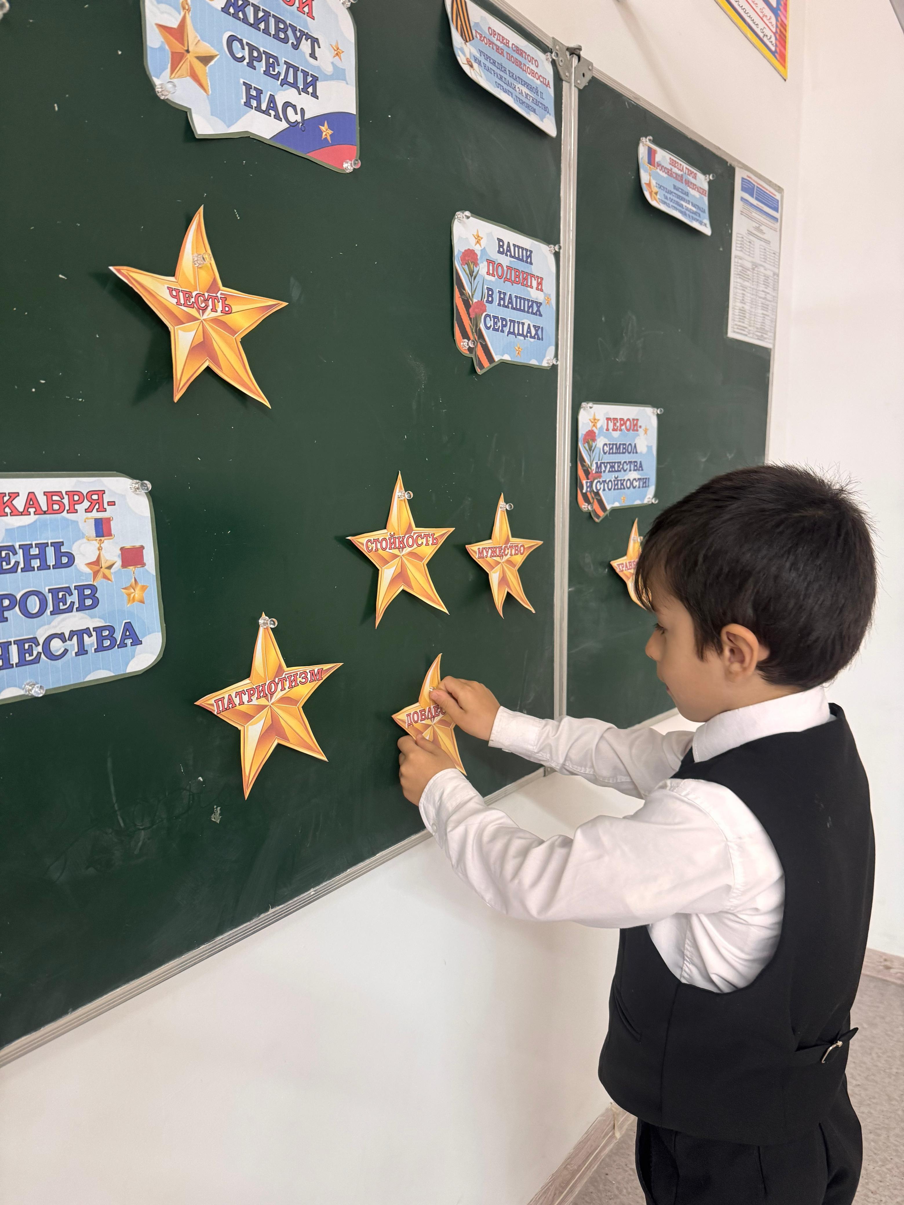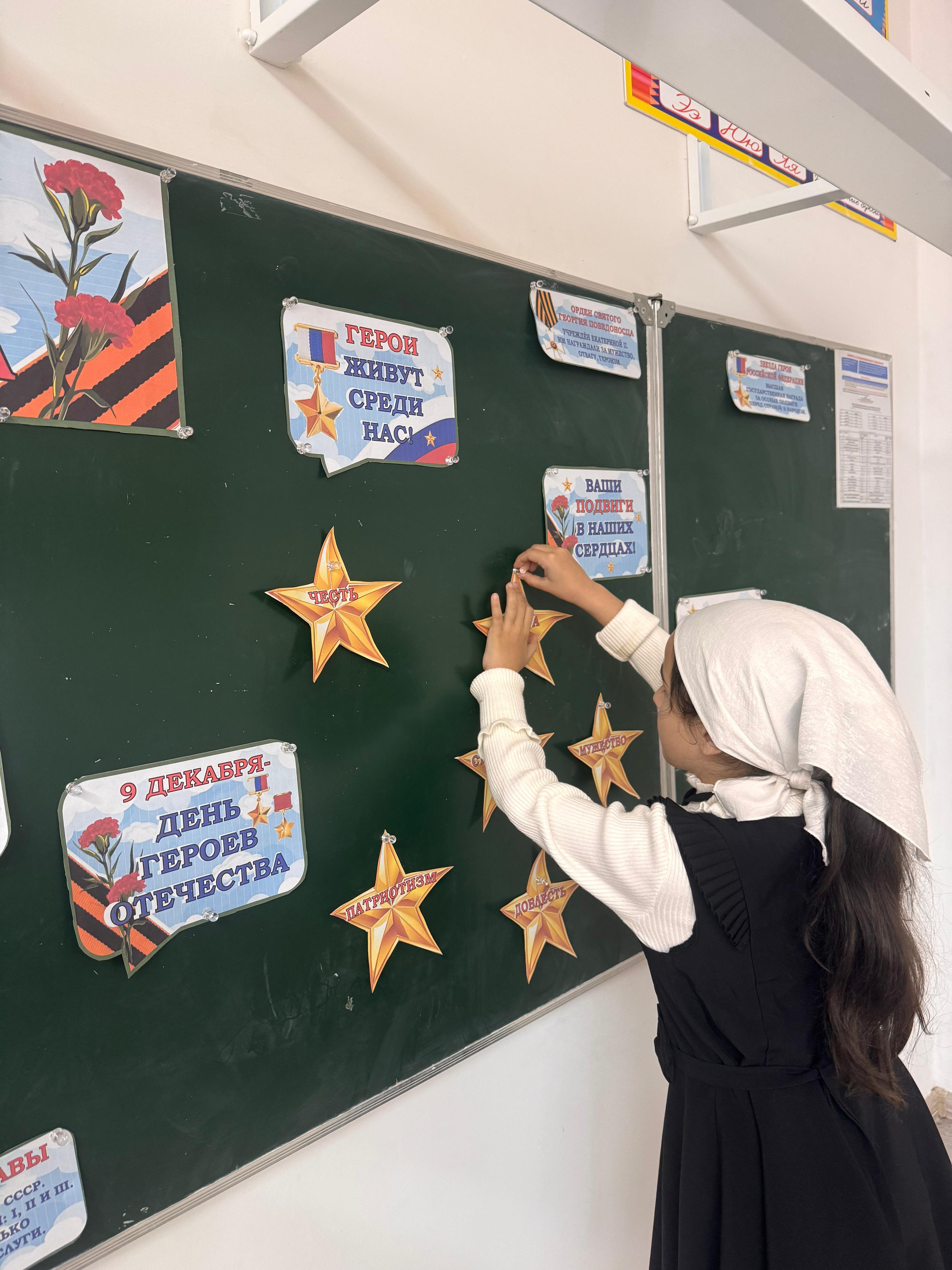 Классный руководитель 1-го класса Джамалдинова Л.А.провела классный час для обучающихся 1 класса ко Дню Героев Отечества. Беседа была посвящена знакомству с понятиями «герой» и «подвиг», воспитанию патриотизма, гордости и уважения к истории России с целью расширить знания о героях, показать важность служения Родине и вдохновить детей на добрые поступки, формируя гражданственность и любовь к Отечеству.