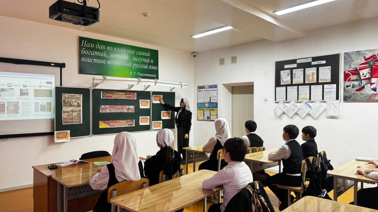 27 января — это важная дата, когда мы вспоминаем жертв Холокоста и отмечаем День памяти. В этом году Урок мужества, проведённый Мусаниповой Х.С., классным руководителем 7 "б" класса, стал значимым событием для обучающихся.