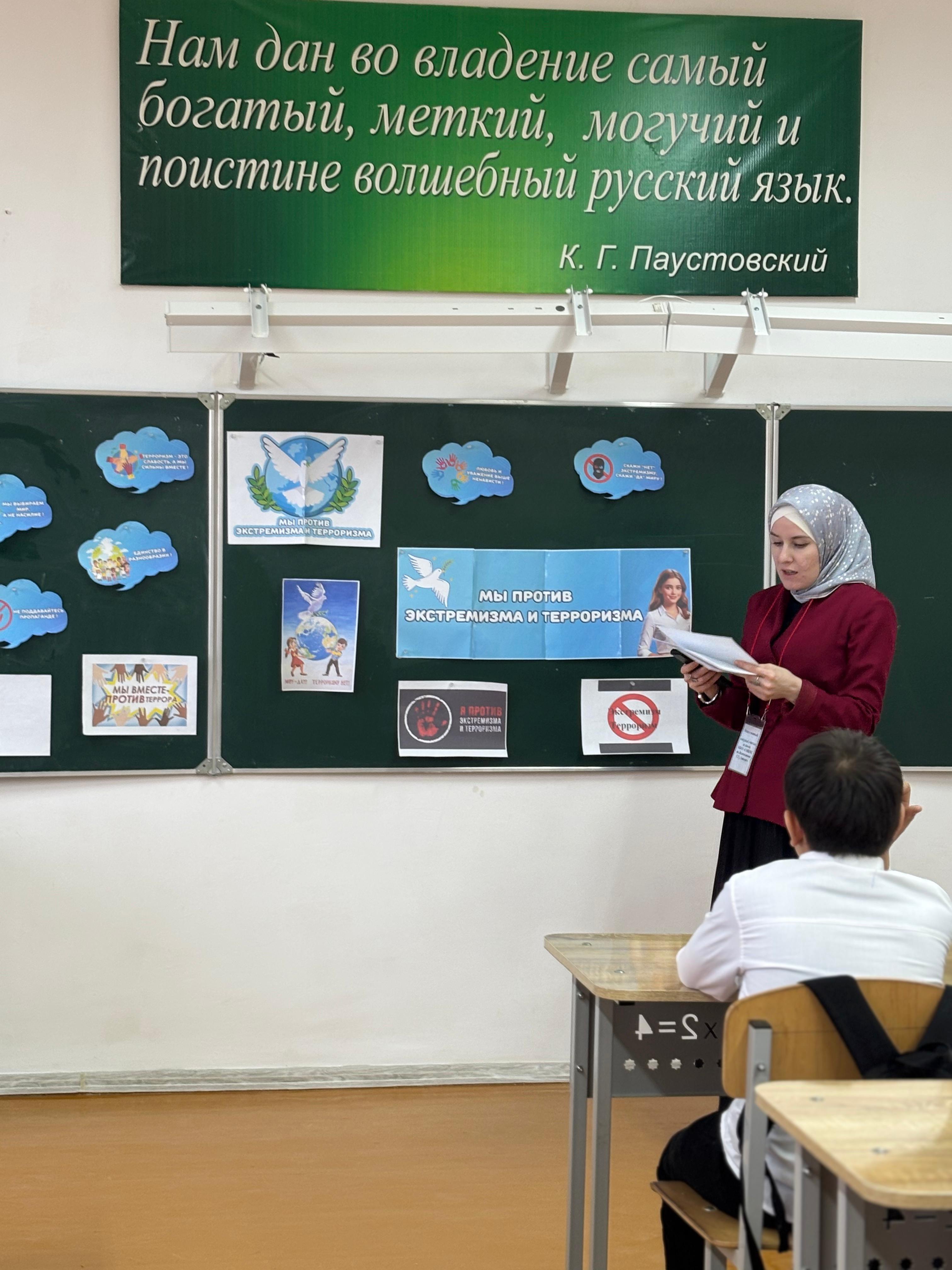 Классный час на тему «Терроризм и экстремизм», проведённый Хизриевой Л.Х., был посвящён формированию у учащихся негативного отношения к проявлениям экстремизма и терроризма, а также развитию общественного сознания и гражданской позиции. В ходе мероприятия обсуждались сущность и виды экстремизма, его характерные черты, а также связь между экстремизмом и терроризмом. Учащиеся узнали о последствиях этих явлений для общества и о важности толерантного отношения друг к другу.